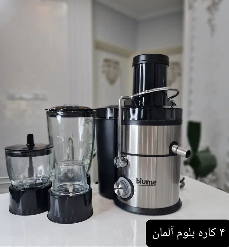 دستگاه چندکاره ۴ کاره بلوم آلمان با توان واقعی ۱۲۰۰ وات، ترکیبی از آبمیوهگیری، خردکن، مخلوطکن و آسیاب است. تیغههای استیل ضدزنگ، طراحی کمصدا، آن را به انتخابی عالی برای آشپزخانههای مدرن تبدیل کردهاند.